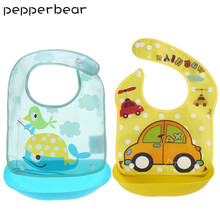 泡椒熊(pepperbear)1/2只围兜婴儿防水吃饭宝宝口水兜小孩防脏神器超软儿童大号围嘴食饭兜 可拆型饭兜·防水设计丨2个装【蓝+黄】