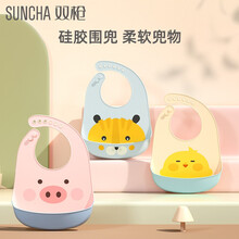 双枪 宝宝围兜饭兜婴儿食饭兜儿童硅胶围嘴防水立体吃饭兜口水兜巾 小粉猪