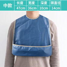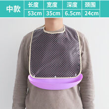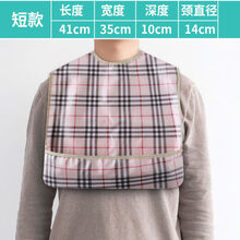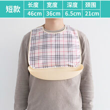 吃饭围兜大人饭兜老人围嘴硅胶防水兜兜成人老年人用的口水兜围裙 简洁短款【蓝底格】(面料升级)