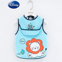 迪士尼同款小孩子的宝宝吃饭围兜 防水婴儿儿童罩男女围嘴口水巾夏季无袖免洗围裙 【黄色】无袖款大头狮子 小码【0-3岁】