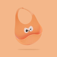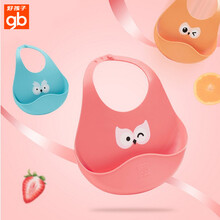 gb好孩子 宝宝硅胶围兜儿童防水立体饭兜围嘴宽口径防漏柔软硅胶围嘴喂饭衣兜宝宝吃饭围兜防水食饭兜. 红色围兜