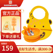 【现货秒发】marcus马库斯围兜硅胶宝宝立体防水食饭兜婴儿可调节围嘴婴儿围嘴口水巾罩衣 黄色长颈鹿