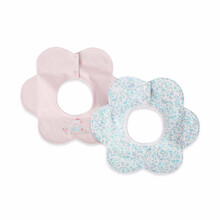 小米米(minimoto)婴儿防水棉围兜宝宝吃饭围嘴儿 经典小熊/31*28cm/宝蓝条纹+米白印花