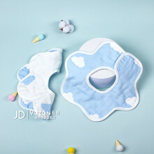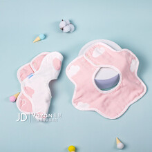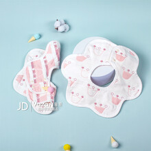 雅赞(YAZAN)婴儿花瓣围嘴 纯棉纱布360度旋转口水巾 三层兔子