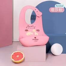 小雅象婴儿硅胶围兜宝宝吃饭围嘴辅食兜防水立体超软食饭兜口水兜 塔莎粉(Letter)