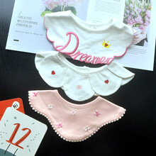 婴儿口水巾新生儿棉围兜男女宝宝纱布花边假领子围嘴 兰色系爱心(3条装薄款纱布)