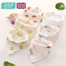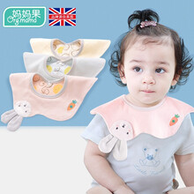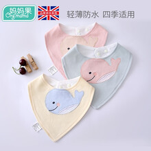 妈妈果 新生婴儿口水巾围嘴纯棉防水宝宝三角巾吃饭围兜儿童口水兜防吐奶 可可朵花_防水3条装