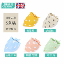 妈妈果 婴儿口水巾纯棉围嘴宝宝三角巾防吐奶口水兜新生儿用品可爱 5条装_D2款 均码