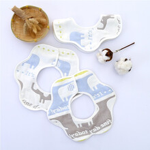 格鲁格(GRUG)婴儿围嘴儿童围兜纯棉围嘴新生儿纯棉6层纱布婴儿饭兜儿童圆系带围兜 U型围嘴2条(男宝组)