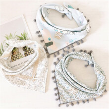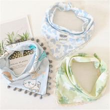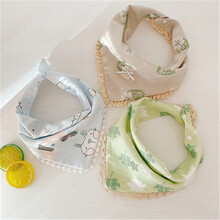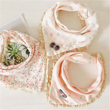 女宝宝三角口水巾棉婴幼儿童围嘴兜蕾丝花边双层按扣围巾韩版 粉粉白