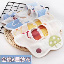福郎特新生儿口水巾 宝宝系带围嘴棉6层纱布婴儿围兜花朵形饭兜喂奶巾 5条 女宝套装(绑带款棉6层)
