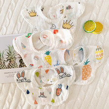 夏季薄款宝宝口水巾围兜新生儿防吐奶纯棉纱布围嘴婴儿360度旋转 3条(U型防水棉纱)蓝鲸组