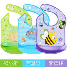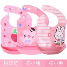 宝宝吃饭围兜婴儿童防水围嘴可拆卸围兜食饭兜喂饭婴儿小孩免洗兜 粉草莓+紫蜜蜂+粉猪
