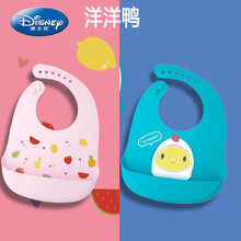 迪士尼/Disney 宝宝吃饭围兜防水免洗口水巾男女宝宝小孩吃饭硅胶食饭兜儿童围嘴 蓝色小鸡