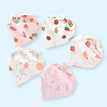 口水巾婴儿纯棉围嘴春夏季新生儿头巾儿童围巾口水围兜宝宝三角巾 5条装三角巾清凉夏日()