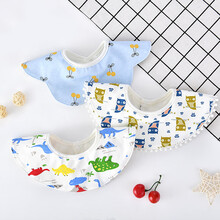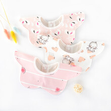 婴儿口水巾纯棉防水围兜新生儿童360旋转口水兜宝宝围嘴春夏薄款 3条装花朵防水白胖胖(薄款) 建议0-3岁