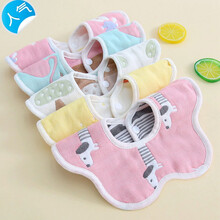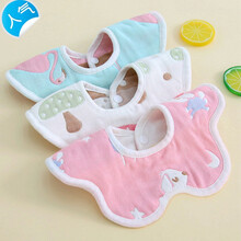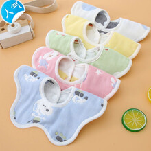 婴儿宝宝口水巾 新生儿棉质纱布围嘴宝宝防水360度旋转吐奶巾吃饭围兜 男宝款(5条装)