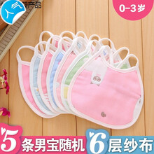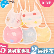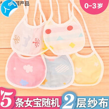 0-1-2岁6层纱布婴儿宝宝围嘴纯棉纱布口水巾绑带式新生儿系带围兜 _6层纱布小围嘴_5条女宝随机
