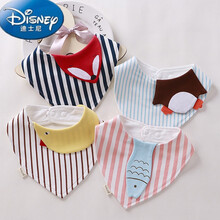 迪士尼软腻亲肤高档品牌婴儿三角巾纯棉春秋宝宝口水巾新生儿围嘴三角口水围兜卡通围巾 3条装黄星星+蓝小熊+绿小熊
