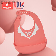 宝宝吃饭围兜婴儿防水围嘴食饭兜喂儿童小孩硅胶超软口水兜防口水巾 粉色小兔
