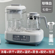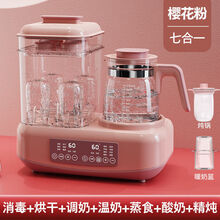 【新品】恒温 调奶器奶瓶消毒器烘干三合一暖奶器温奶器二合一自动恒温热奶婴儿 粉色(消毒烘干调奶暖奶蒸食)六合一